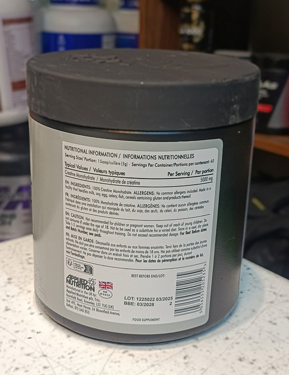 ترکیبات: کراتین مونوهیدرات، طعمدهندهها، شیرینکنندهها و مواد افزودنی مجاز.