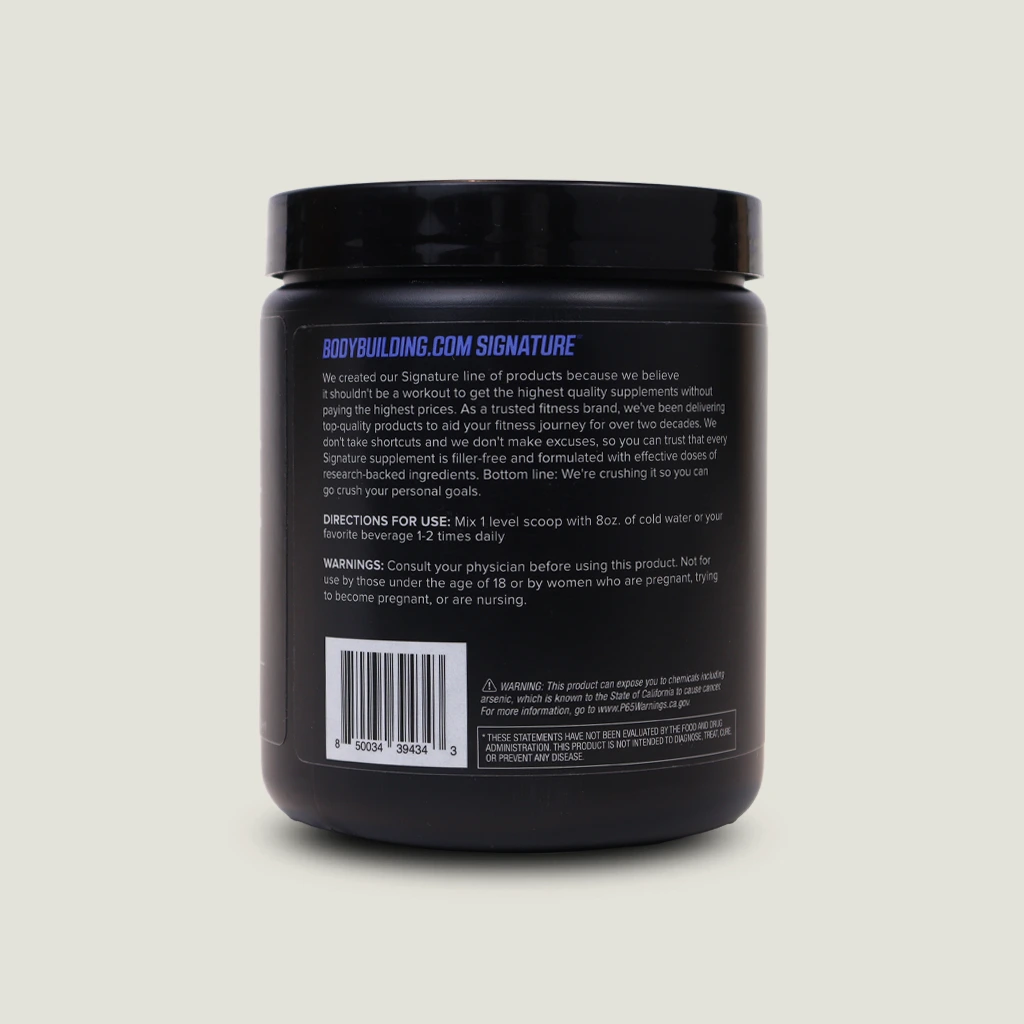 این کراتین مونوهیدرات محصولی از برند بادیبیلدینگ سیگنیچر است که در بستهبندی ۱۵۰ گرم عرضه میشود. این نسخه معمولاً بهصورت پودر میکرونیزه خالص (Micronized) طراحی شده تا با ذرات ریز بهتر در مایعات حل شده و جذب بالاتری داشته باشد. (در معرفی رسمی برند اشاره شده است که پودر دارای مش ۲۰۰ است و به راحتی در مایعات حل میشود)