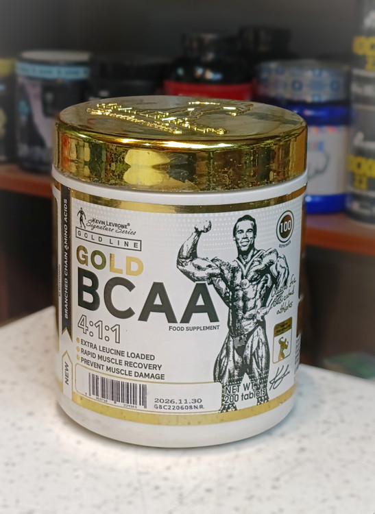 قرص BCAA Gold Kevin 200 عددی شامل اسیدهای آمینه شاخهدار (BCAA) است که برای افزایش قدرت، کاهش خستگی و حمایت از ریکاوری عضلات طراحی شده است.