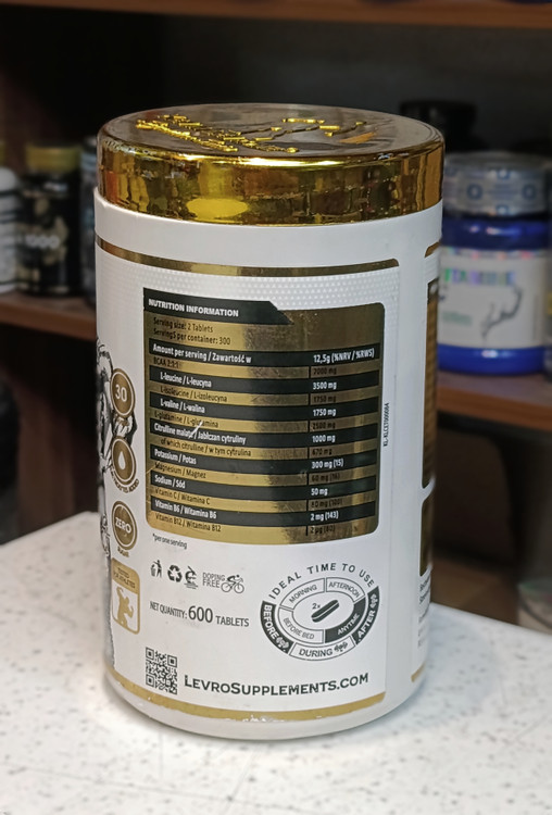 محصول BCAA Gold Kevin Levrone 600 عددی ترکیبی از اسیدهای آمینه شاخهدار (BCAA) با فرمول حرفهای است که برای ریکاوری سریعتر عضلات، افزایش انرژی و استقامت در تمرینات سنگین طراحی شده. 🌟
