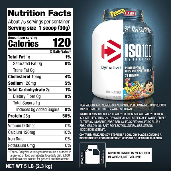 - محتوای پروتئین: هر سروینگ (۳۰ گرم) از دایماتیز ایزوله حاوی ۲۵ گرم پروتئین با کیفیت بالا است که به ساخت و حفظ توده عضلانی کمک میکند.