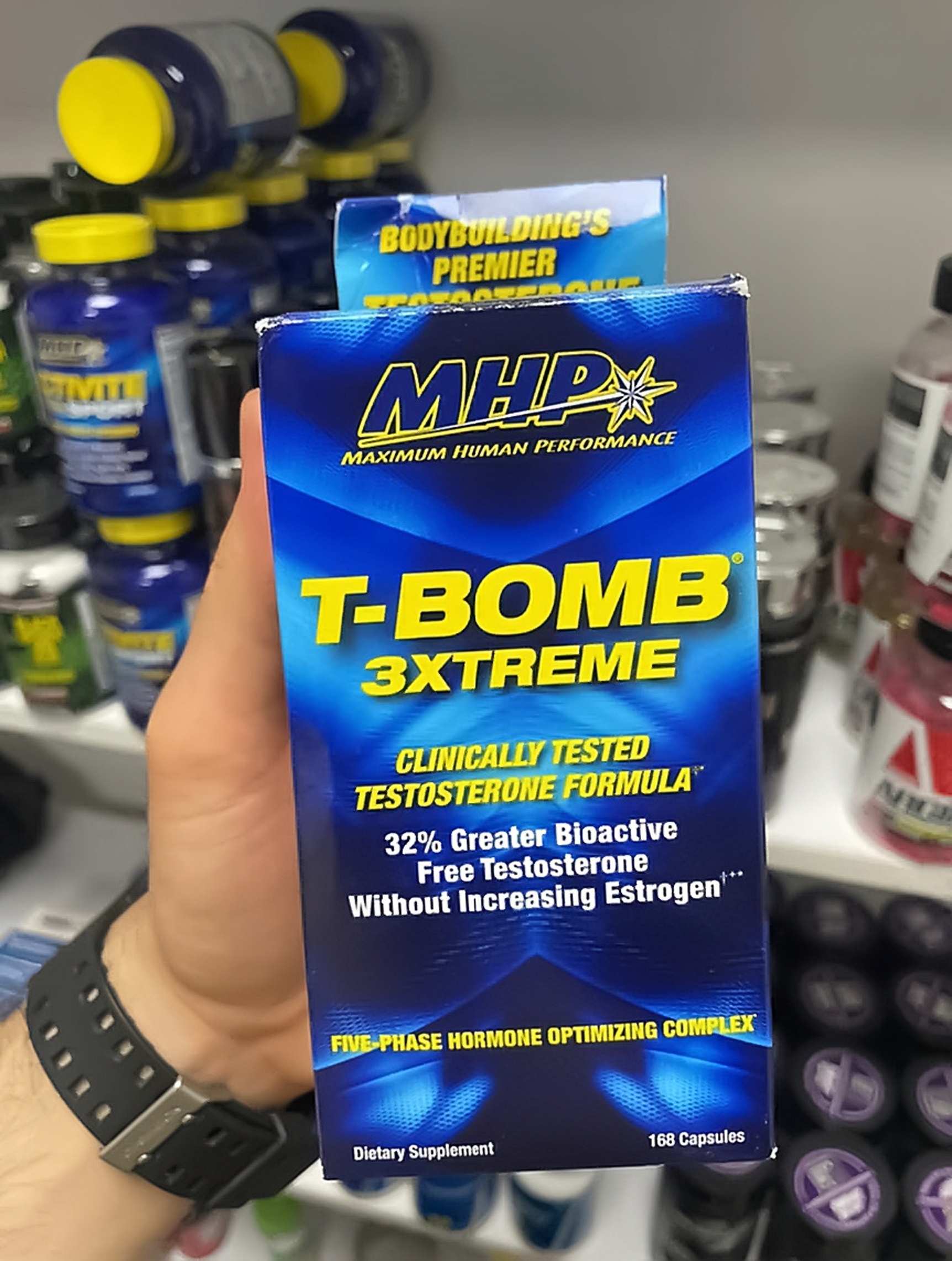 MHP T-Bomb 3Xtreme یک مکمل تستوسترون طبیعی است که با فرمولاسیون پیشرفته و ترکیب مواد مؤثر، به افزایش سطح تستوسترون آزاد، تقویت عضلات، افزایش قدرت و بهبود عملکرد جنسی کمک میکند